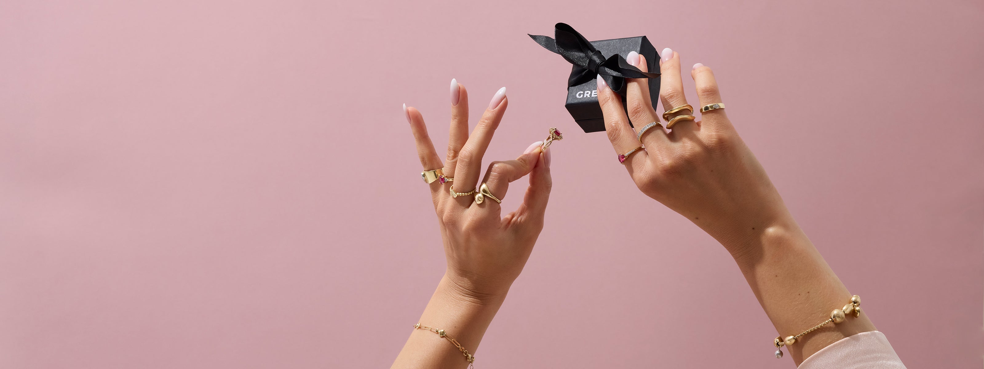 Entdecken Sie unsere Kollektion von Modeschmuck aus 14-karätigem Gold, darunter elegante Ohrringe, Armbänder und Ringe mit atemberaubenden Perlenmustern.