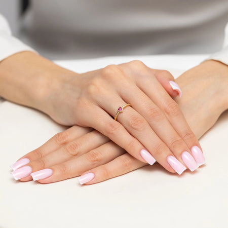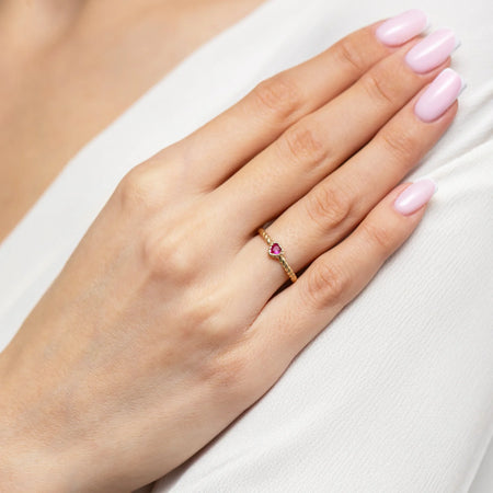 Braided heart gold ring with ruby zirconia