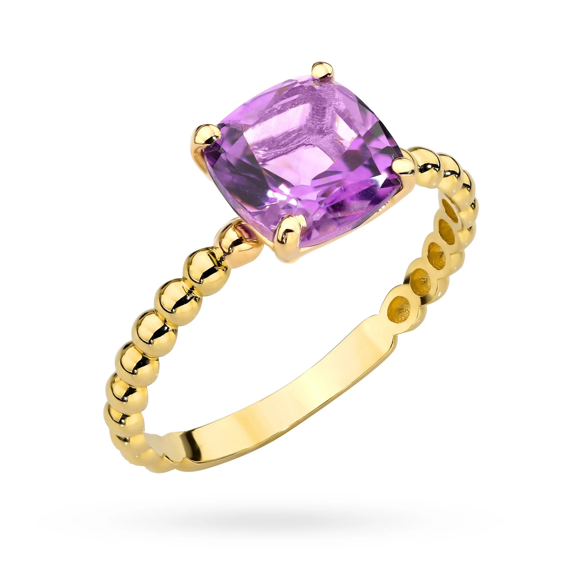 Gold bead ring with square amethyst