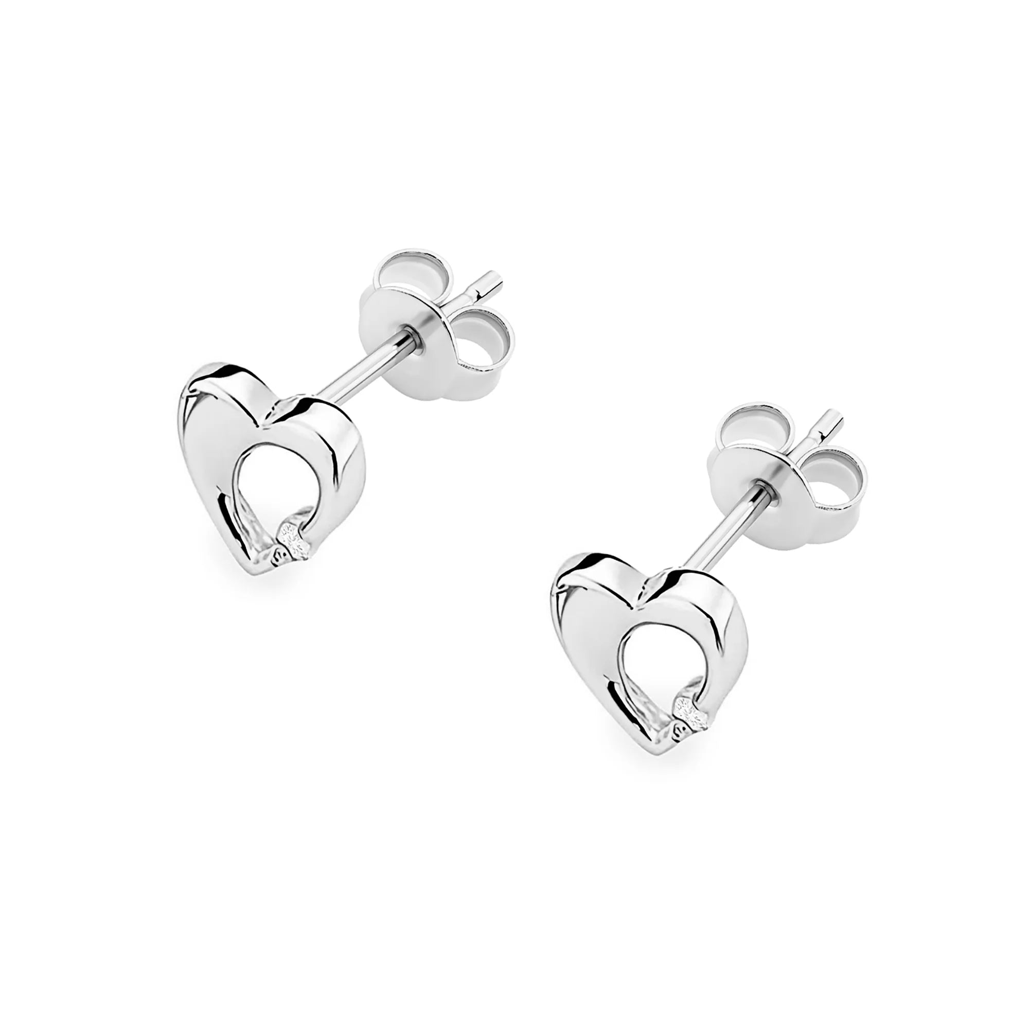 Gold Earrings with Diamonds Hearts