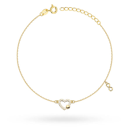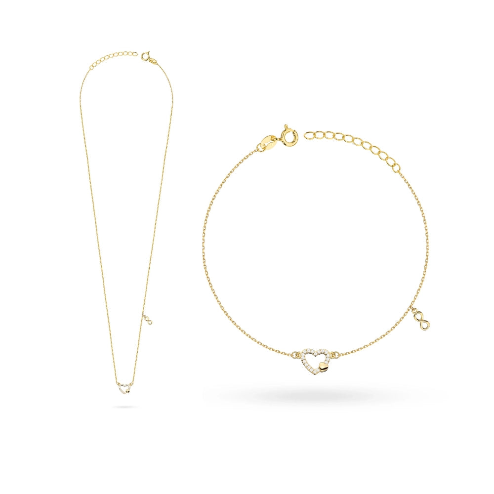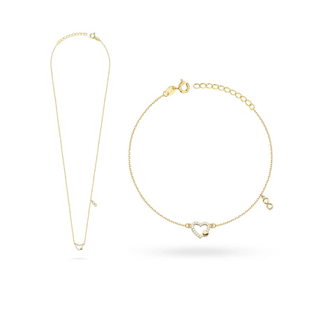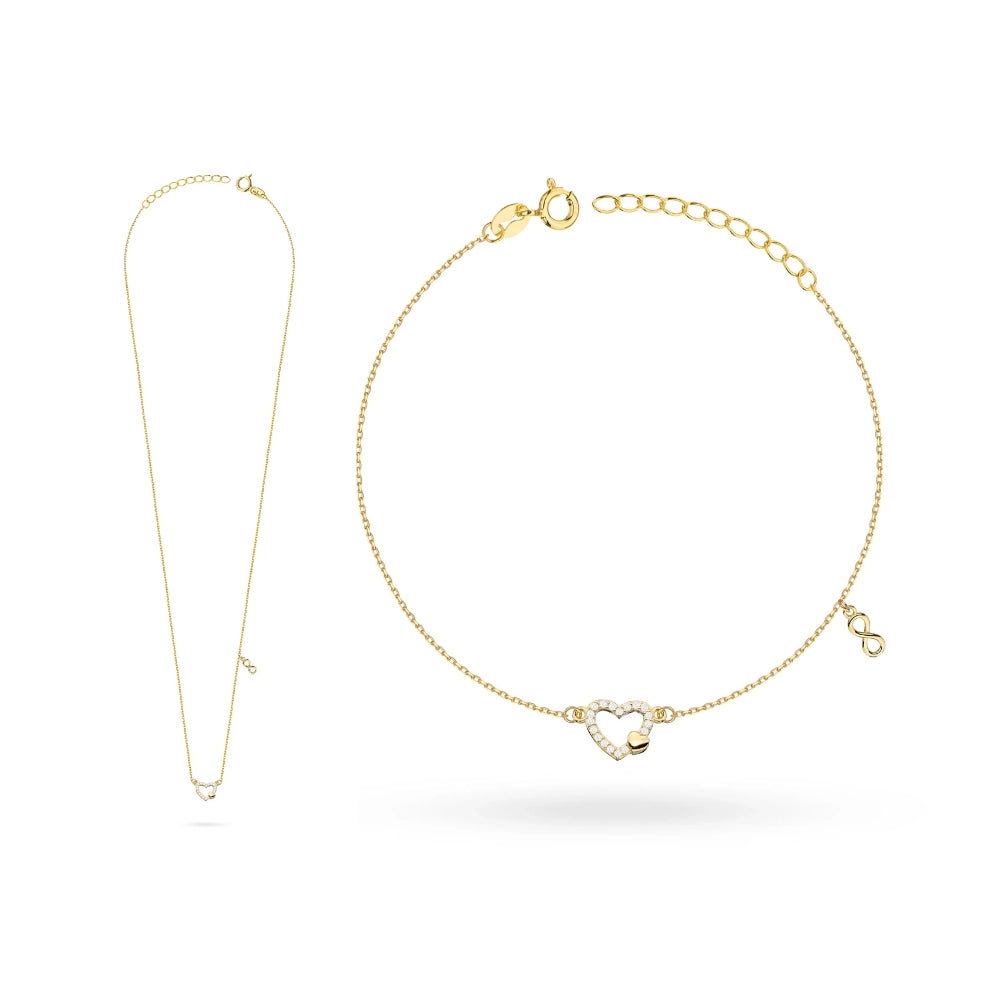 Gold-plated necklace and bracelet set — heart with cubic zirconia and infinity