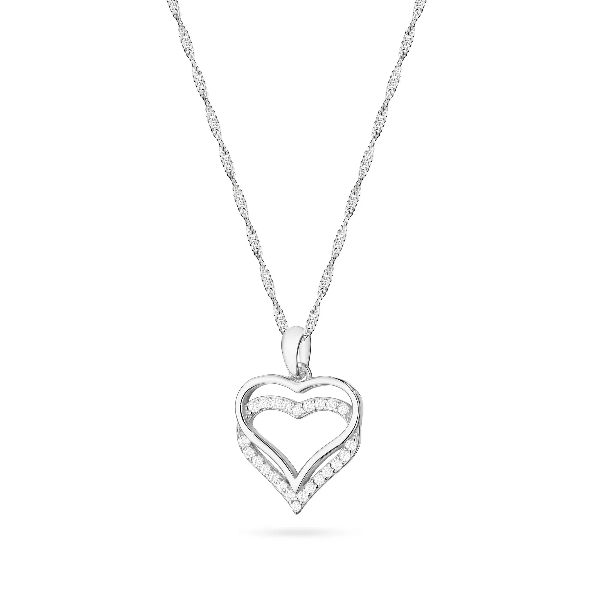 Silver Necklace with Linked Heart Pendants and Cubic Zirconia