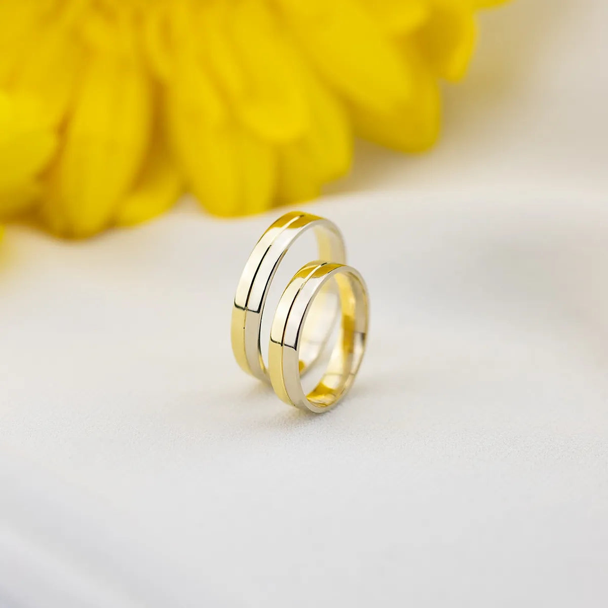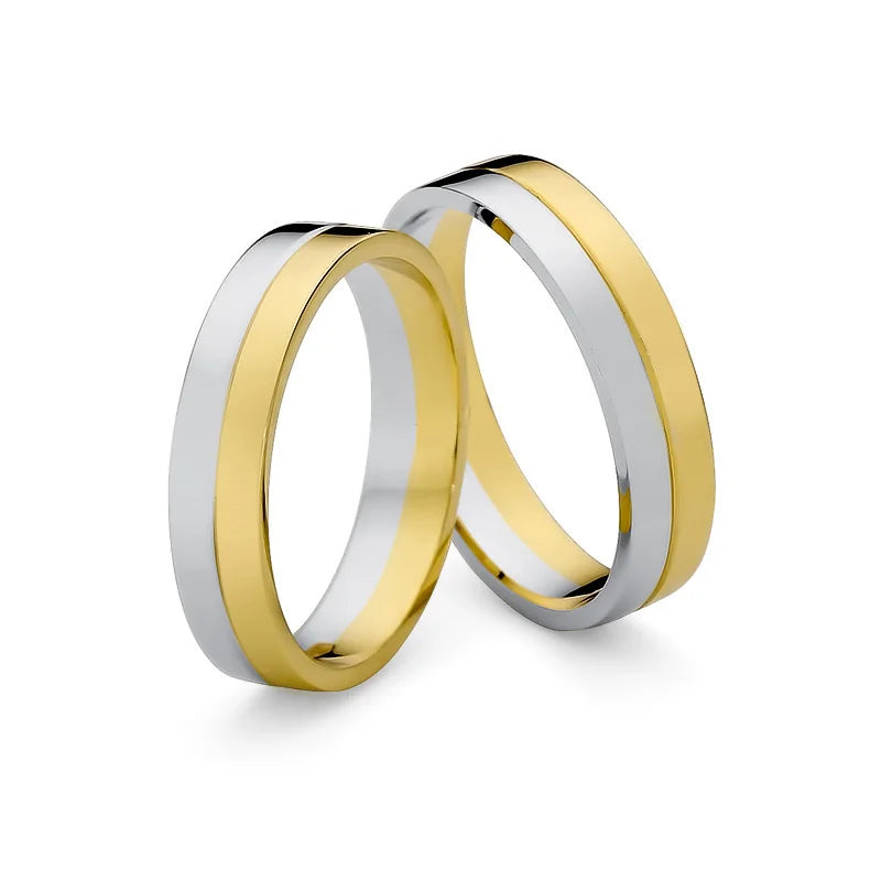 Flach zweifarbige Gold Trauringe Ringe 5mm
