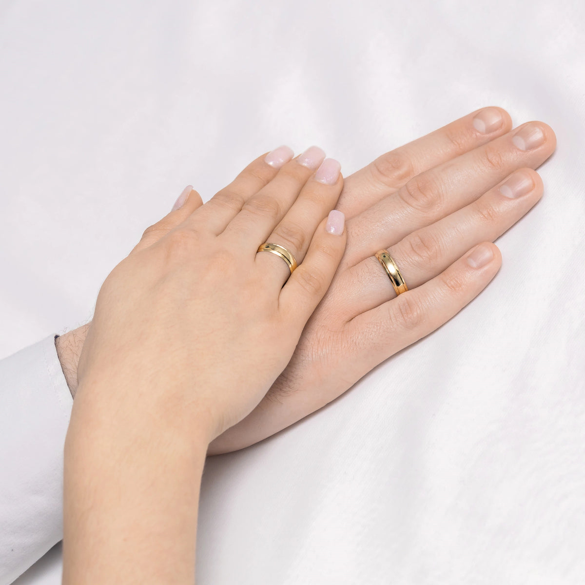 Gelbgold Trauringe Ringe Poliert 4mm Handgefertigt in der Gremari Schmuckwerkstatt, einzigartige klassische Trauringe aus 14K (585) Gold, sind ein zeitloses Symbol ewiger Liebe. Der Ring, 4 mm breit, sieht an der Hand wunderschön aus, ist dezent und passt perfekt zu anderen Schmuckstücken wie Armbändern oder Ringen mit Edelsteinen oder einem Verlobungsring. Jedes Paar Trauringe wird in unserer Werkstatt nach Kundenwunsch gefertigt. Es ist möglich, sie durch eine Gravur mit eigenem Text weiter zu personalisieren. Wir verpacken die Trauringe in einer eleganten Schmuckschatulle, die zum Charakter Ihrer Zeremonie passt.