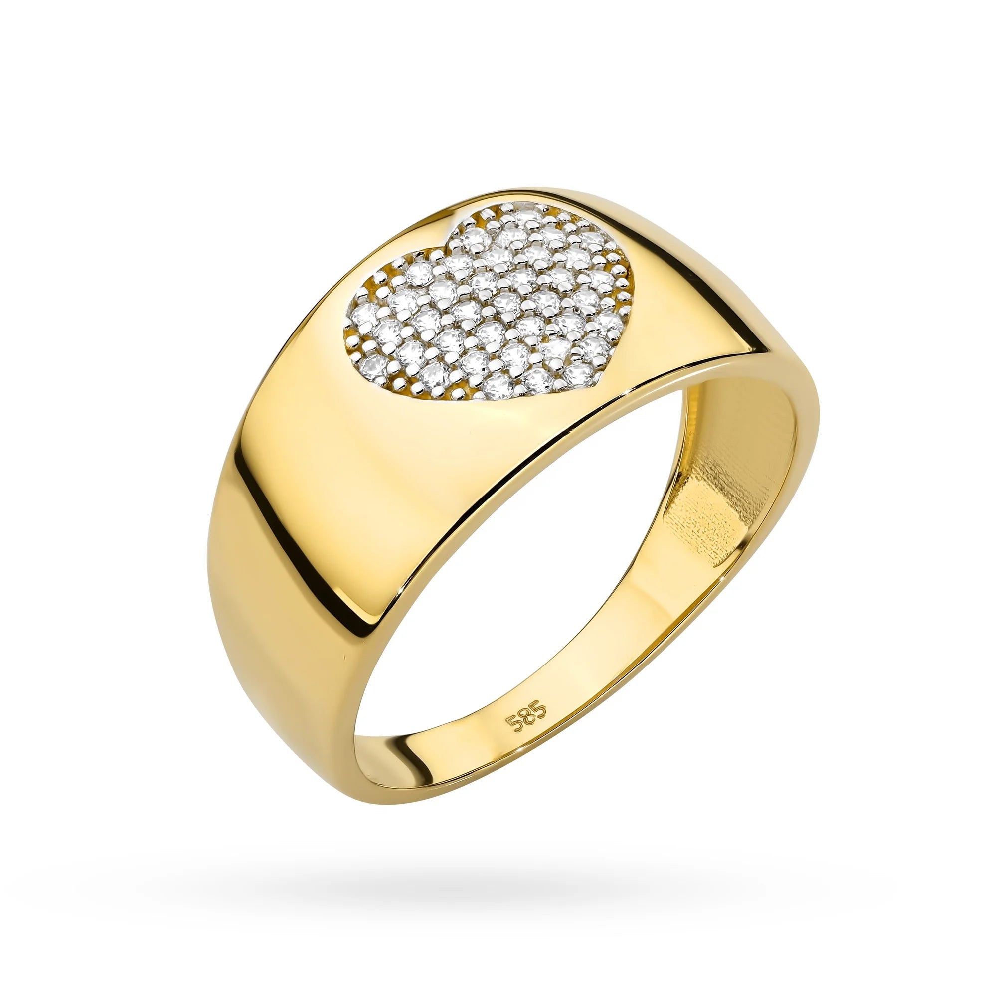 Goldener Herzring mit Zirkonia verziert