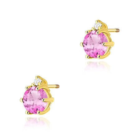 Goldohrringe mit 0,60 ct pinken Topasen und 0,029 ct Diamanten