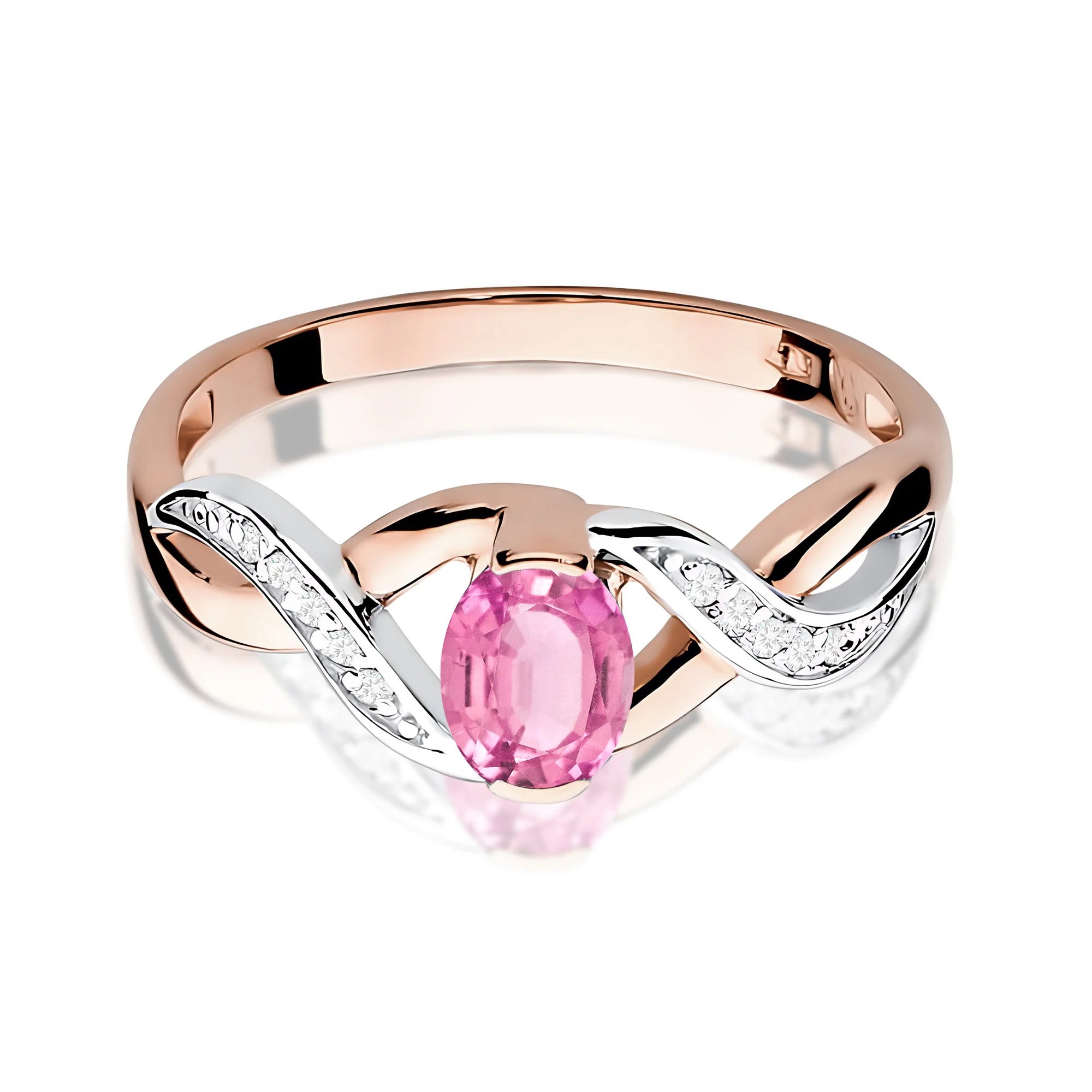 Goldring mit rosa Saphir und 0,05 ct Diamanten