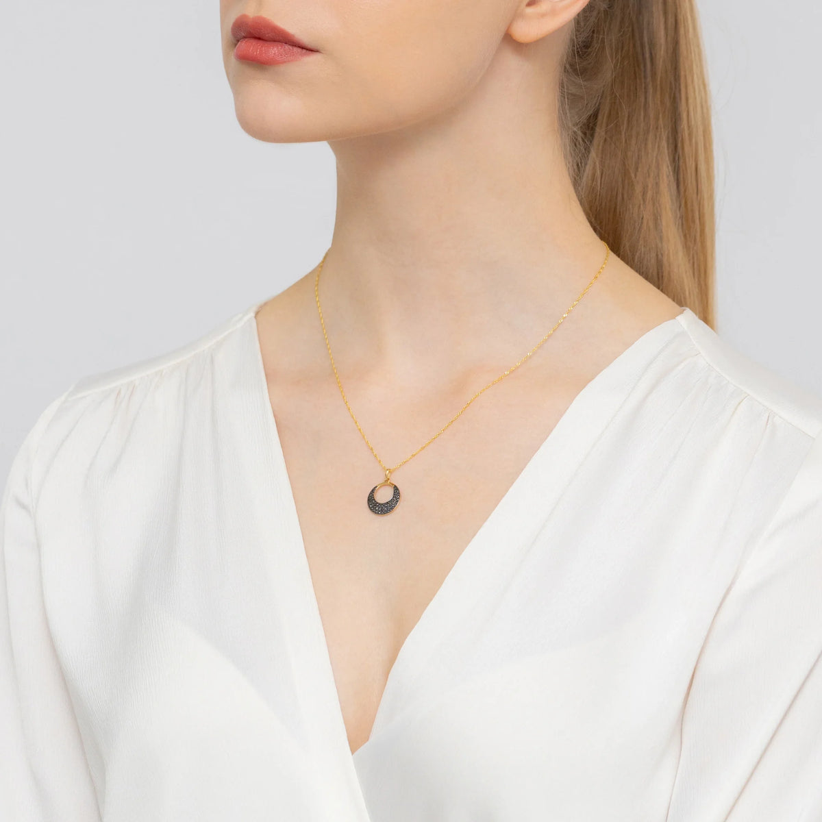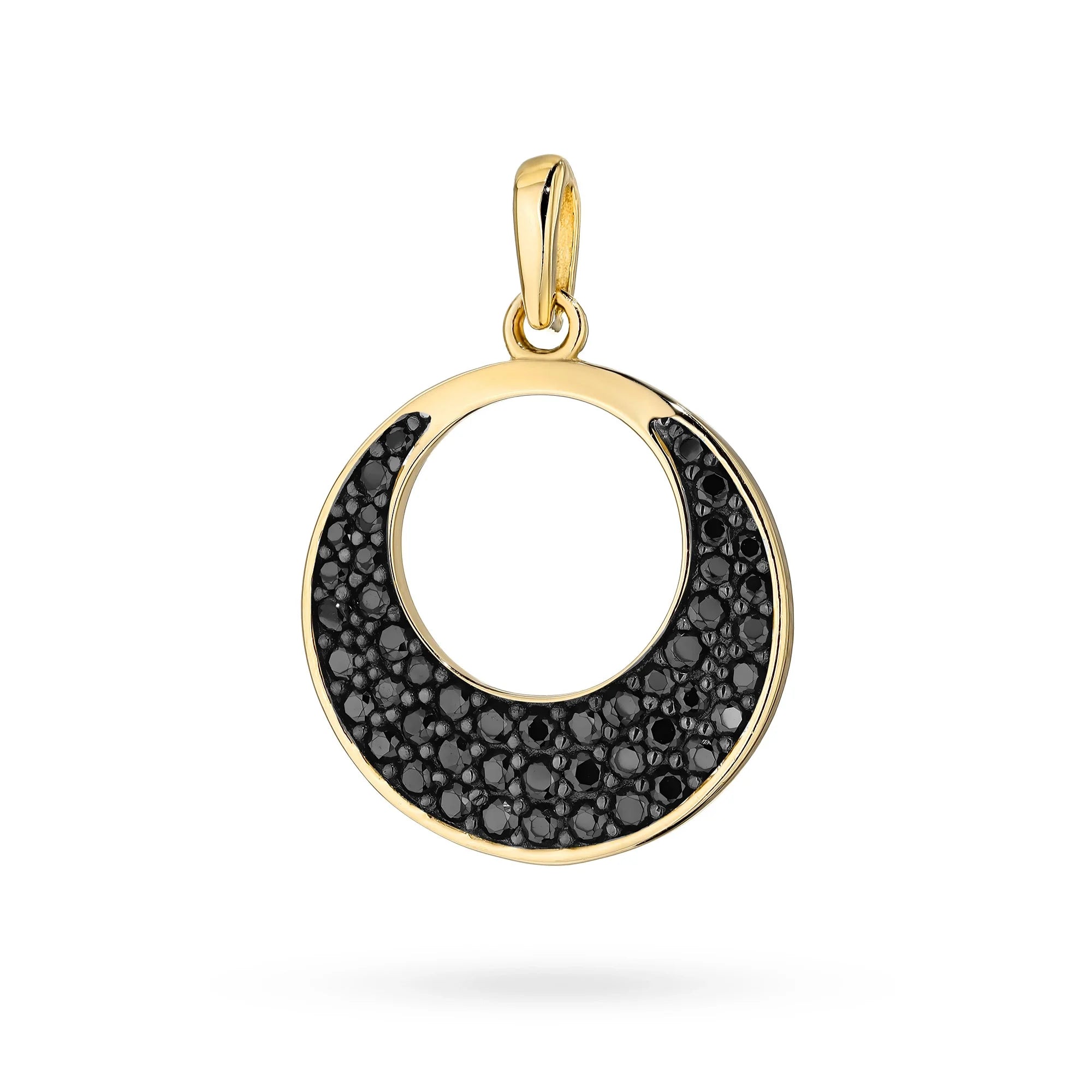 Goldset: offener Kreisanhänger mit bösem Blick Motiv und schwarzem Zirkonia