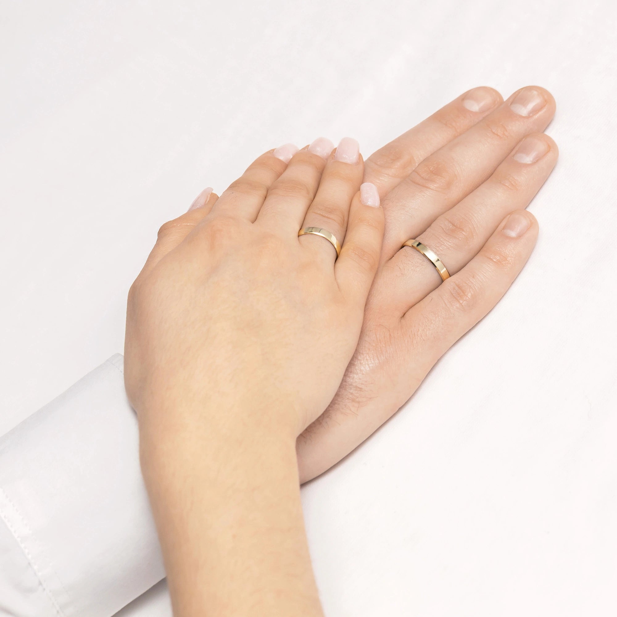 Klassischer Flach Abgeschrägt Einzelner Goldener Ehering 2mm Handgefertigt in der Gremari Schmuckwerkstatt, einzigartiger einzelner klassischer Ehering aus hochwertigem 14-karätigem Gold mit einer Feinheit von 585, ist ein zeitloses Symbol ewiger Liebe. Der Ring, 2 mm breit und 1,2 mm dick, sieht an der Hand wunderschön aus, ist dezent und passt perfekt zu anderen Schmuckstücken wie Armbändern oder Ringen mit Edelsteinen oder einem Verlobungsring. Um den Erwartungen unserer Kunden gerecht zu werden, bieten wir bei Gremaeri die Möglichkeit, einen einzelnen Ehering zu kaufen, damit jeder von euch nach seinen eigenen Vorlieben wählen kann. Andere Angebote umfassen verschiedene Breiten, Formen und Oberflächen für Eheringe – kreiert euer eigenes einzigartiges perfektes Paar! Wir bieten goldene Eheringe in drei edlen Farbtönen an: klassisches Gelbgold begeistert mit seinem warmen Glanz und ist ein zeitloses Symbol der Ehe; elegantes Weißgold hat einen modernen, kühlen, spiegelähnlichen Glanz, der an Platin erinnert; während romantisches Roségold mit seinem dezenten, warmen und modischen Farbton verzaubert. Jeder Ehering wird in unserer Werkstatt nach Kundenbestellung gefertigt. Es ist möglich, ihn weiter zu personalisieren, indem eine Gravur mit eigenem Text hinzugefügt wird. Wir verpacken den Ehering in einer eleganten Schmuckschachtel, die zum Charakter eurer Zeremonie passt.