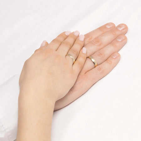 Klassische halbrunde Gold-Trauringe 5mm Handgefertigt in der Gremari Schmuckwerkstatt, sind einzigartige klassische Trauringe aus 14K (585) Gold ein zeitloses Symbol ewiger Liebe. Der Ring, 5mm breit und 1,2mm dick, sieht an der Hand wunderschön aus, ist dezent und passt perfekt zu anderen Schmuckstücken wie Armbändern oder Ringen mit Edelsteinen oder einem Verlobungsring. Wir bieten Gold-Trauringe in drei edlen Farbtönen an: klassisches Gelbgold begeistert mit seinem warmen Glanz und ist ein zeitloses Symbol der Ehe; elegantes Weißgold hat einen modernen, kühlen, spiegelähnlichen Glanz, der an Platin erinnert; während romantisches Roségold mit seinem dezenten, warmen und modischen Farbton verzaubert. Jedes Paar Trauringe wird in unserer Werkstatt nach Kundenwunsch gefertigt. Es ist möglich, sie durch eine Gravur mit eigenem Text weiter zu personalisieren. Wir verpacken die Trauringe in einer eleganten Schmuckschatulle, die zum Charakter Ihrer Zeremonie passt.