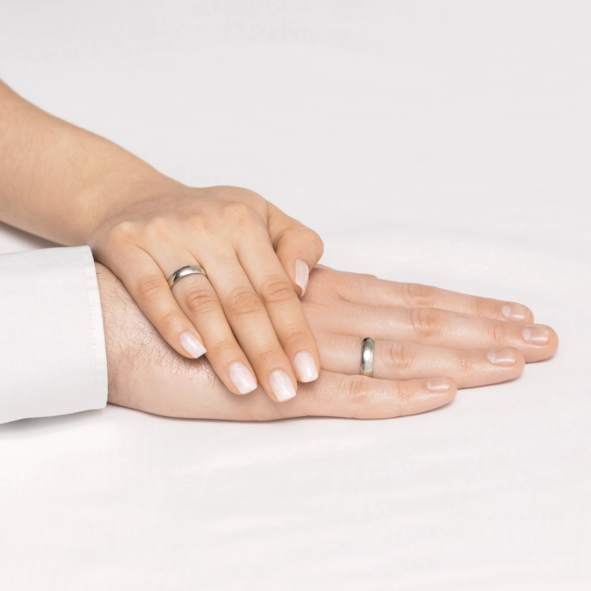Klassische halbrunde Gold-Trauringe in 5 und 6 mm, handgefertigt in der Gremari Schmuckwerkstatt, einzigartige klassische Eheringe aus 14K (585) Gold, sind ein zeitloses Symbol ewiger Liebe. Der Ring, 5 und 6 mm breit und 1,2 mm dick, sieht an der Hand wunderschön aus, ist dezent und passt perfekt zu anderen Schmuckstücken wie Armbändern oder Ringen mit Edelsteinen oder einem Verlobungsring. Wir bieten Gold-Trauringe in drei edlen Farbtönen an: klassisches Gelbgold begeistert mit seinem warmen Glanz und ist ein zeitloses Symbol der Ehe; elegantes Weißgold hat einen modernen, kühlen, spiegelähnlichen Glanz, der an Platin erinnert; während romantisches Roségold mit seinem dezenten, warmen und modischen Farbton verzaubert. Jedes Paar Trauringe wird in unserer Werkstatt nach Kundenwunsch gefertigt. Es ist möglich, sie durch eine Gravur mit eigenem Text weiter zu personalisieren. Wir verpacken die Trauringe in einer eleganten Schmuckschatulle, die zum Charakter Ihrer Zeremonie passt.