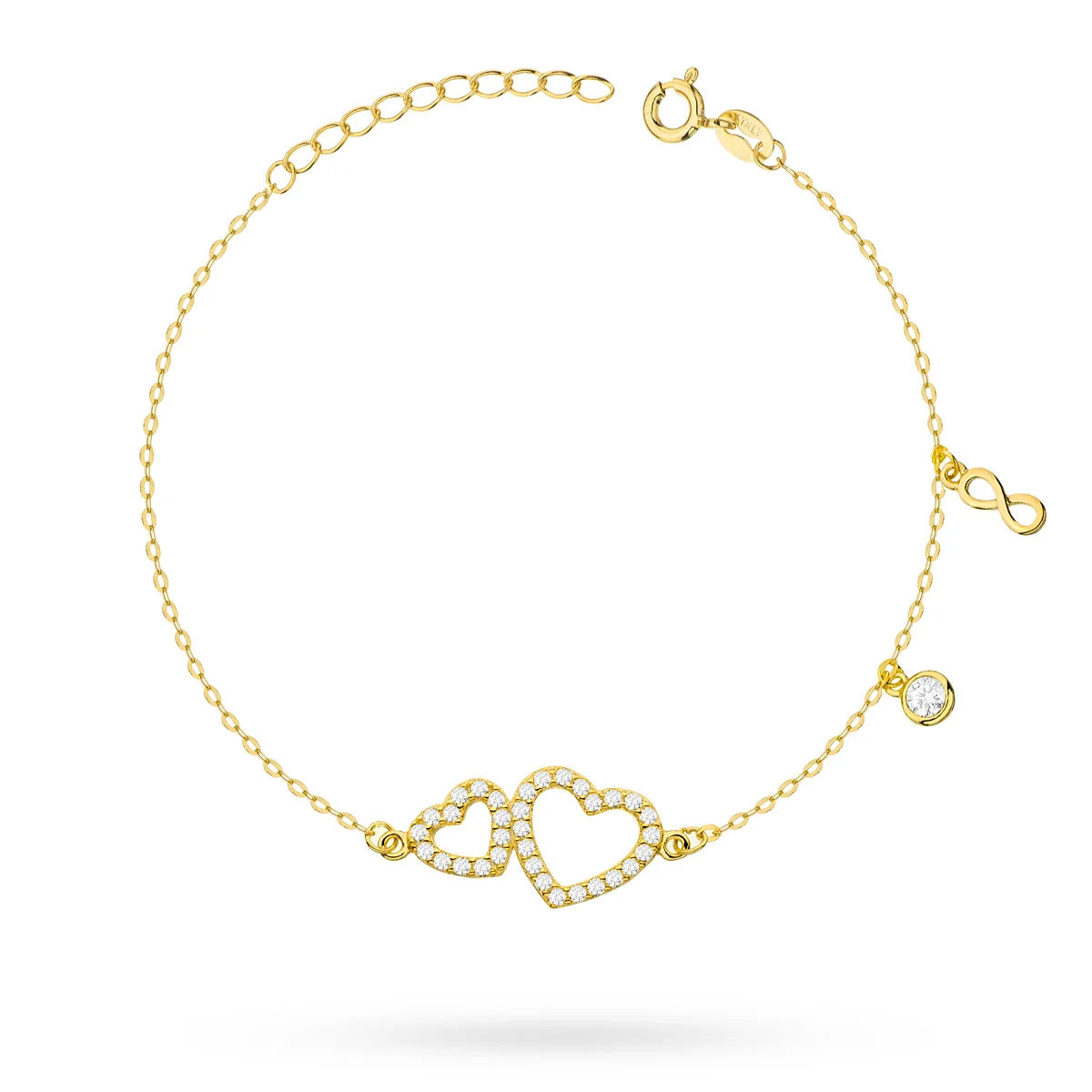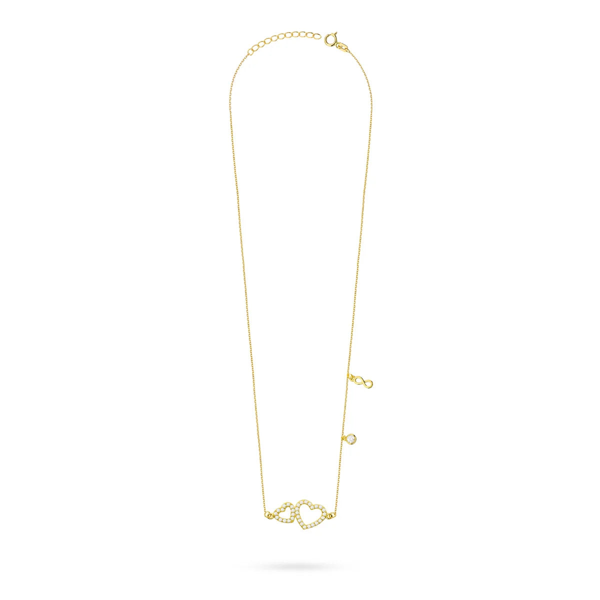 Vergoldetes Halsketten- und Armbandset — Herzen und Unendlichkeit mit Zirkonia