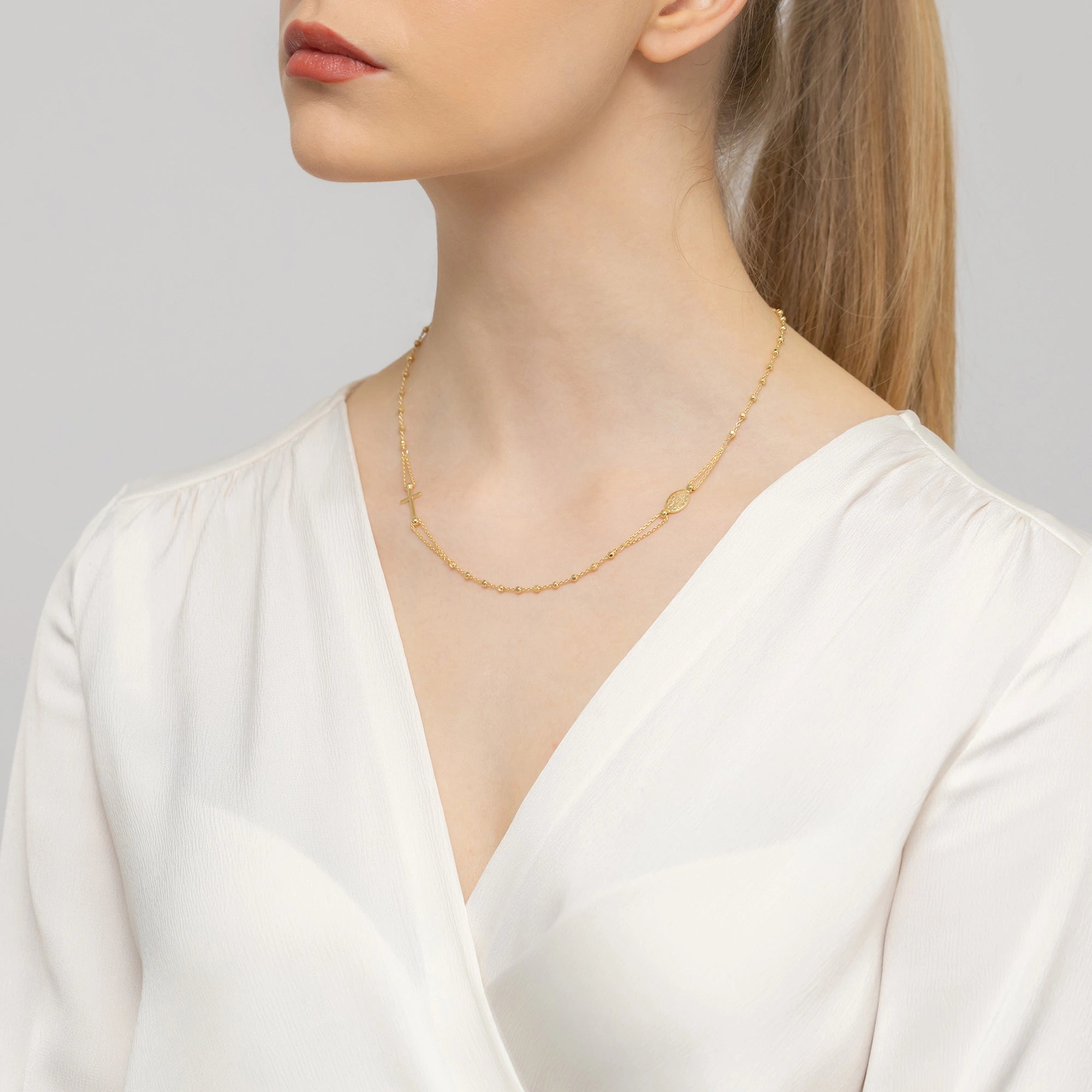 Vergoldete Silberkette mit Medaillon-Kreuz