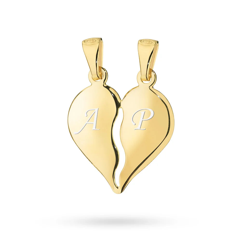 Anhänger aus vergoldetem Silber in geteiltem Herz für Paare