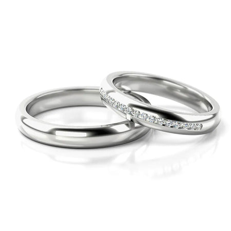 Handgefertigt in der Gremari Schmuckwerkstatt, sind einzigartige klassische Eheringe aus 14K (585) Weißgold ein zeitloses Symbol ewiger Liebe. Der Ring, 3,5 mm breit und 1,6 mm dick, sieht an der Hand wunderschön aus, ist dezent und passt perfekt zu anderen Schmuckstücken wie Armbändern oder Ringen mit Edelsteinen oder einem Verlobungsring.