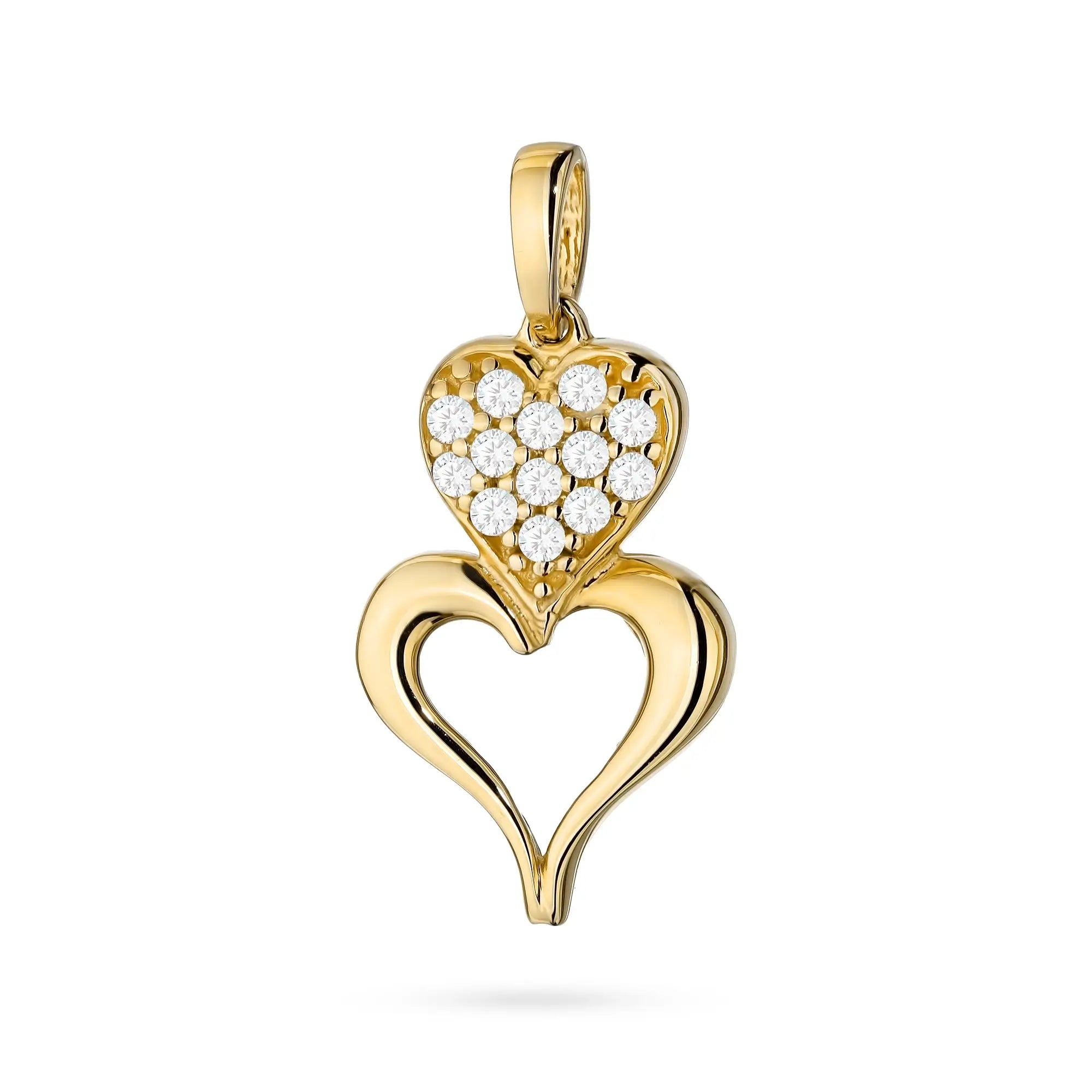 Gold Pendant with Zirconia Two Joined Hearts