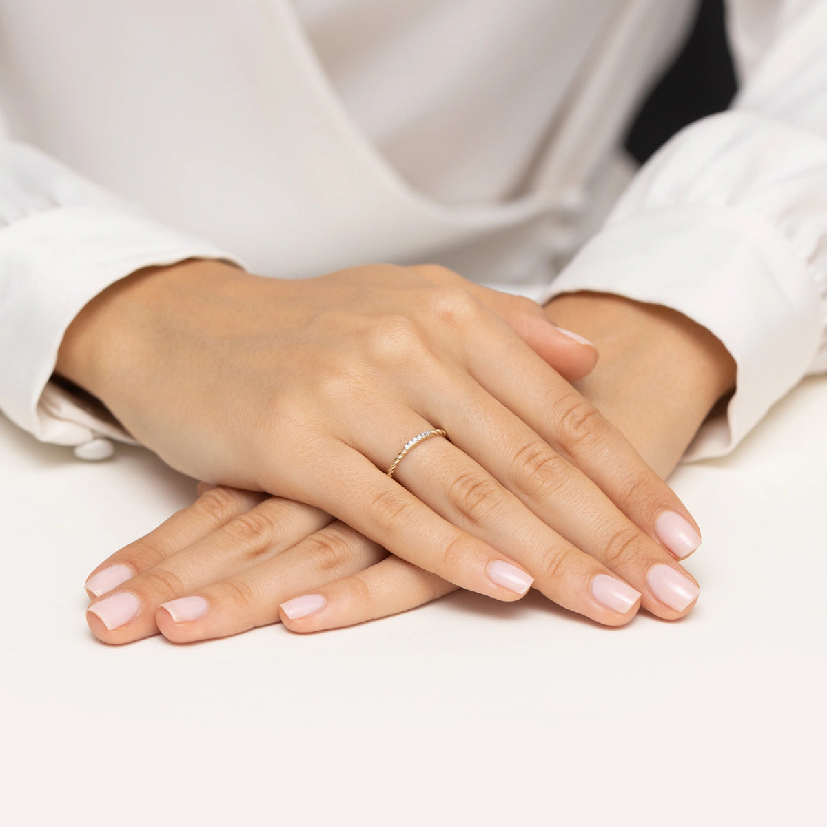 Gold Weaved Ring with Zirconia Handcrafted in the traditional Gremari jewelry workshop, this gold ring set in 8K gold with a 333 hallmark is a charming, delicate accessory that emphasises the beauty of your hands. The subtle design makes this gold ring a perfect match for other jewellery, such as diamond rings and gold bracelets. A gold ring is the essence of elegance and class. It is a versatile accessory that you can wear every day and on special occasions. Made of the highest quality gold, it impresses with its timeless shine and durability. It is the perfect way to emphasize your style and add a touch of luxury to any outfit.Zirconia stones are created in laboratory conditions, and their high hardness and excellent optical properties make them one of the best diamond imitations available on the jewellery market. Their extraordinary ability to refract light makes them sparkle spectacularly with every movement. Gremari gold ring is packaged in an elegant box, which is perfect for giving as a gift. It comes with a jewelry tag showing the fineness, weight, and symbol of the metal ” even if it's a last-minute gift, you're covered!