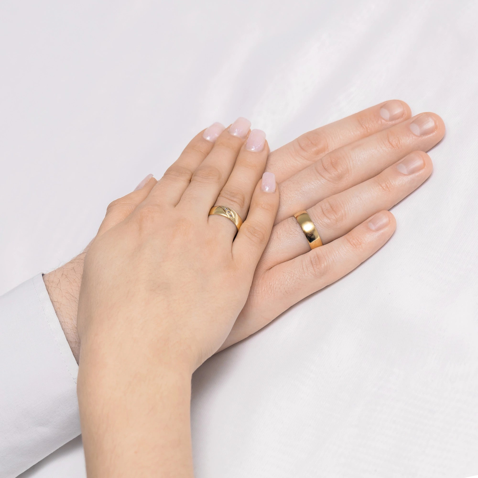 Gelbgold Trauringe Ringe mit Zirkonia Poliert 6mm Handgefertigt in der Gremari Schmuckwerkstatt, einzigartige klassische Trauringe aus 14K (585) Gold, sind ein zeitloses Symbol ewiger Liebe. Der Ring, 6mm breit, sieht an der Hand wunderschön aus, ist dezent und passt perfekt zu anderen Schmuckstücken wie Armbändern oder Ringen mit Edelsteinen oder einem Verlobungsring. Jedes Paar Trauringe wird in unserer Werkstatt nach Kundenwunsch gefertigt. Es ist möglich, sie durch eine Gravur mit eigenem Text weiter zu personalisieren. Wir verpacken die Trauringe in einer eleganten Schmuckschatulle, die zum Charakter Ihrer Zeremonie passt.