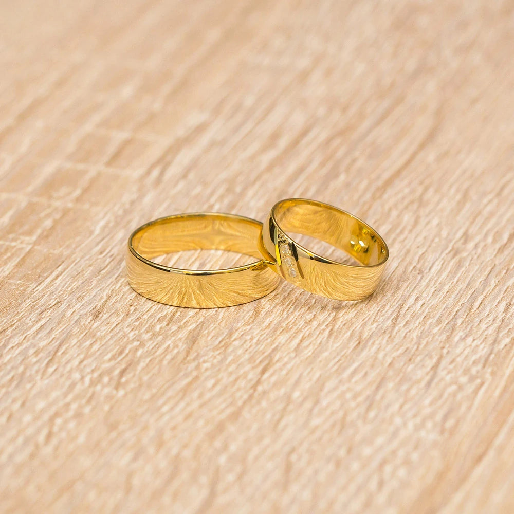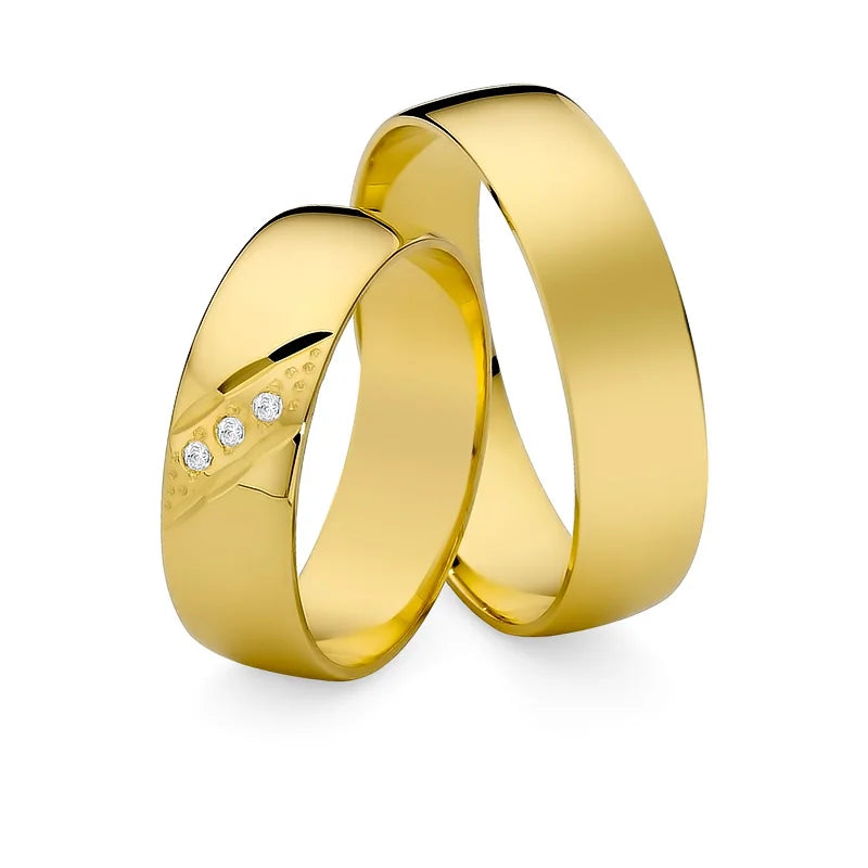 Goldene Eheringe mit Zirkonia, poliert, 6mm