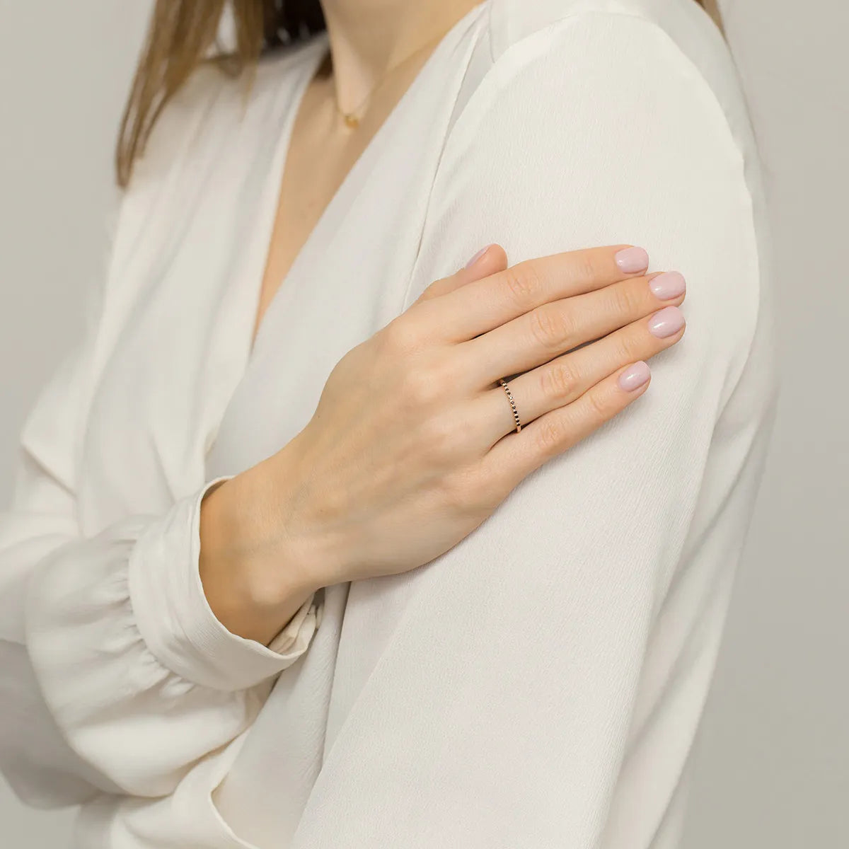 Goldring mit 0,095 ct schwarzen DiamantenHandgefertigt in der traditionellen Gremari-Schmuckwerkstatt, verkörpert dieser Goldring mit zusätzlichen seitlichen schwarzen Diamanten mit einem Gesamtgewicht von 0,095 ct zeitlose Schönheit und handwerkliche Meisterschaft. Eingefasst in 14 Karat Gold mit einem 585er Stempel, vereint dieser Edelstein Eleganz, Subtilität und Langlebigkeit. Dieser Ring ist die perfekte Wahl für einen Verlobungsring und symbolisiert Liebe, Hingabe und eine ewige Bindung. Er ist auch ein wunderbares und elegantes Geschenk zu Jubiläen, Geburtstagen, Weihnachten und anderen bedeutenden Anlässen.