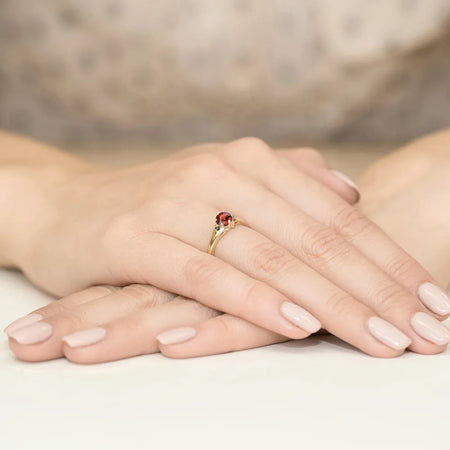 Goldring mit 0,60 ct Granat und schwarzen Diamanten