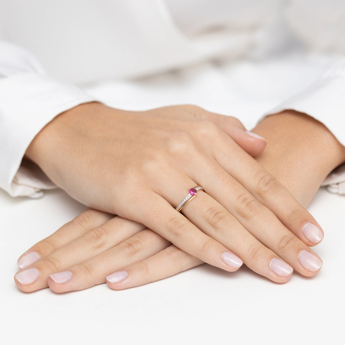 Goldring mit roten Zirkonwellen. Handgefertigt in der traditionellen Gremari-Schmuckwerkstatt, ist dieser Goldring aus 14 Karat Gold mit 585er Punze ein charmantes, zartes Accessoire, das die Schönheit Ihrer Hände betont. Das dezente Design macht diesen Goldring zur perfekten Ergänzung für anderen Schmuck wie Diamantringe und Goldarmbänder. Ein Goldring ist die Essenz von Eleganz und Klasse. Er ist ein vielseitiges Accessoire, das Sie täglich und zu besonderen Anlässen tragen können. Hergestellt aus Gold höchster Qualität, beeindruckt er mit zeitlosem Glanz und Langlebigkeit. Er ist die perfekte Art, Ihren Stil zu unterstreichen und jedem Outfit einen Hauch von Luxus zu verleihen. Zirkonsteine werden unter Laborbedingungen hergestellt, und ihre hohe Härte sowie ausgezeichneten optischen Eigenschaften machen sie zu einer der besten Diamant-Imitationen auf dem Schmuckmarkt. Ihre außergewöhnliche Fähigkeit, Licht zu brechen, lässt sie bei jeder Bewegung spektakulär funkeln. Der Gremari-Goldring wird in einer eleganten Schachtel verpackt, die sich ideal als Geschenk eignet. Er wird mit einem Schmuckanhänger geliefert, der die Feinheit, das Gewicht und das Metallzeichen zeigt – selbst wenn es ein Last-Minute-Geschenk ist, sind Sie bestens ausgestattet!