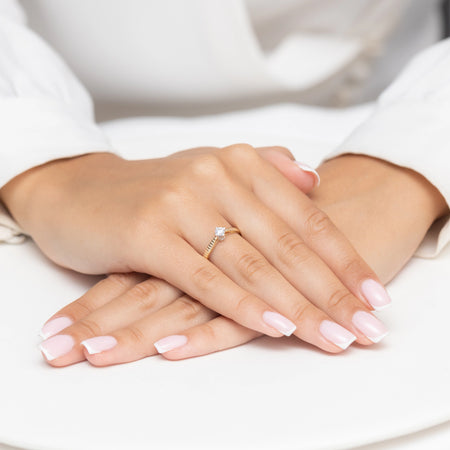 Goldring mit Zirkonia Handgefertigt in der traditionellen Gremari Schmuckwerkstatt, ist dieser Goldring aus 14K Gold mit einem 585er Stempel ein charmantes, zartes Accessoire, das die Schönheit Ihrer Hände betont. Das dezente Design macht diesen Goldring zur perfekten Ergänzung für anderen Schmuck, wie Diamantringe und Goldarmbänder. Ein Goldring ist die Essenz von Eleganz und Klasse. Er ist ein vielseitiges Accessoire, das Sie jeden Tag und zu besonderen Anlässen tragen können. Hergestellt aus Gold höchster Qualität, beeindruckt er mit seinem zeitlosen Glanz und seiner Langlebigkeit. Er ist die perfekte Art, Ihren Stil zu unterstreichen und jedem Outfit einen Hauch von Luxus zu verleihen. Zirkonia-Steine werden unter Laborbedingungen hergestellt, und ihre hohe Härte sowie ausgezeichneten optischen Eigenschaften machen sie zu einer der besten Diamant-Imitationen auf dem Schmuckmarkt. Ihre außergewöhnliche Fähigkeit, Licht zu brechen, lässt sie bei jeder Bewegung spektakulär funkeln. Der Gremari Goldring wird in einer eleganten Schachtel verpackt, die sich perfekt als Geschenk eignet. Er wird mit einem Schmuckanhänger geliefert, der die Feinheit, das Gewicht und das Metallsymbol zeigt – selbst wenn es ein Last-Minute-Geschenk ist, sind Sie bestens vorbereitet!